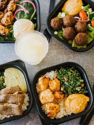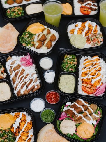 from gyro, falafel, steak and chicken to shrimp, pick your protein.